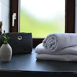 Oltre a servizi per la preparazione di tè/caffè, la strutturadispone di una cucina completamente attrezzata dotata di un bollitore elettrico, un frigo e un forno. L'aeroporto di Francoforte-Hahn, essendo il più vicino, dista 45 km dall'alloggio. Inoltre, la stazione degli autobus Am Markt si trova a 700 metri.